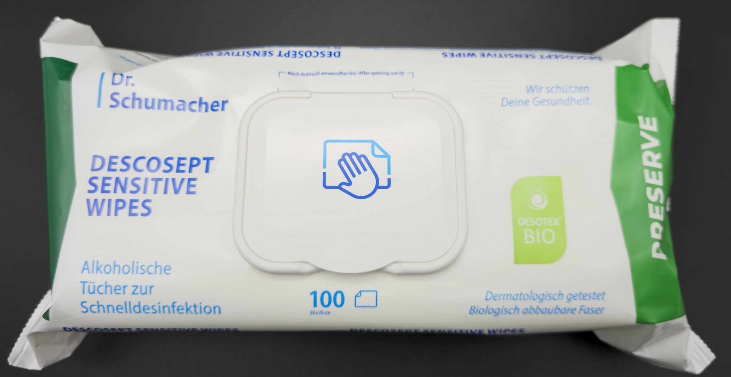 DESCOSEPT® SENSITIVE WIPES sind gebrauchsfertige, alkoholische Desinfektionstücher zur schnellen Reinigung und Desinfektion von Flächen und nichtinvasiven Medizinprodukten – ideal in der häuslichen Pflege, z. B. für Rollator-Griffe, Nachttisch, Bettgitter oder Toilettenstuhl. Die Tücher sind materialschonend und zugleich leistungsstark: wirksam gegen Bakterien und Hefen sowie gegen behüllte Viren (u. a. „begrenzt viruzid (plus)“). Dank praktischer Packung mit wiederverschließbarem Deckel lassen sie sich einzeln entnehmen – für eine einfache, saubere Anwendung.