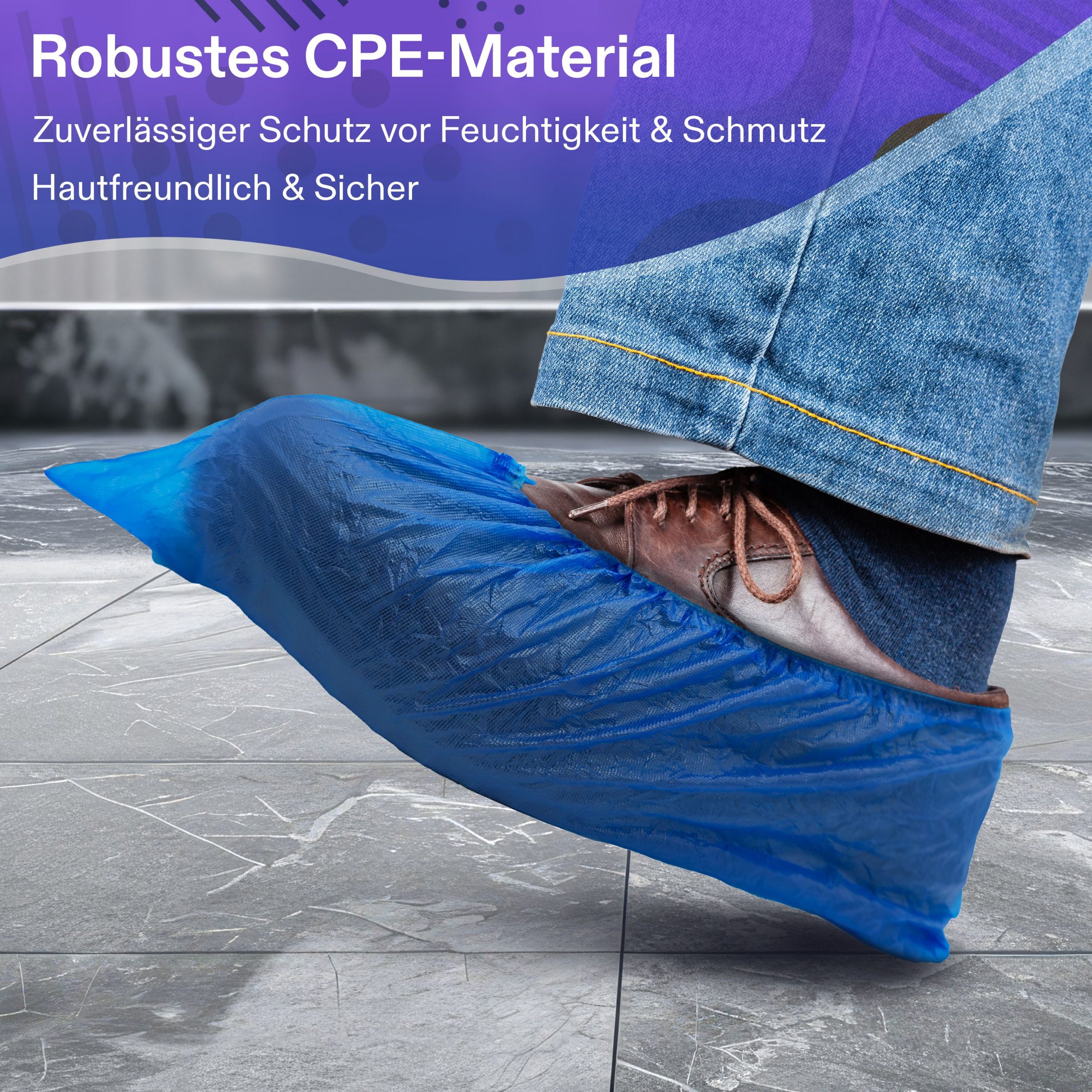 Einweg-Schuhüberzieher – Wasserdicht & Latexfrei: Hergestellt aus robustem CPE-Material, das Ihre Schuhe zuverlässig vor Schmutz, Staub und Feuchtigkeit schützt. Perfekt für den Einsatz in medizinischen Einrichtungen, Handwerksbetrieben oder zu Hause.