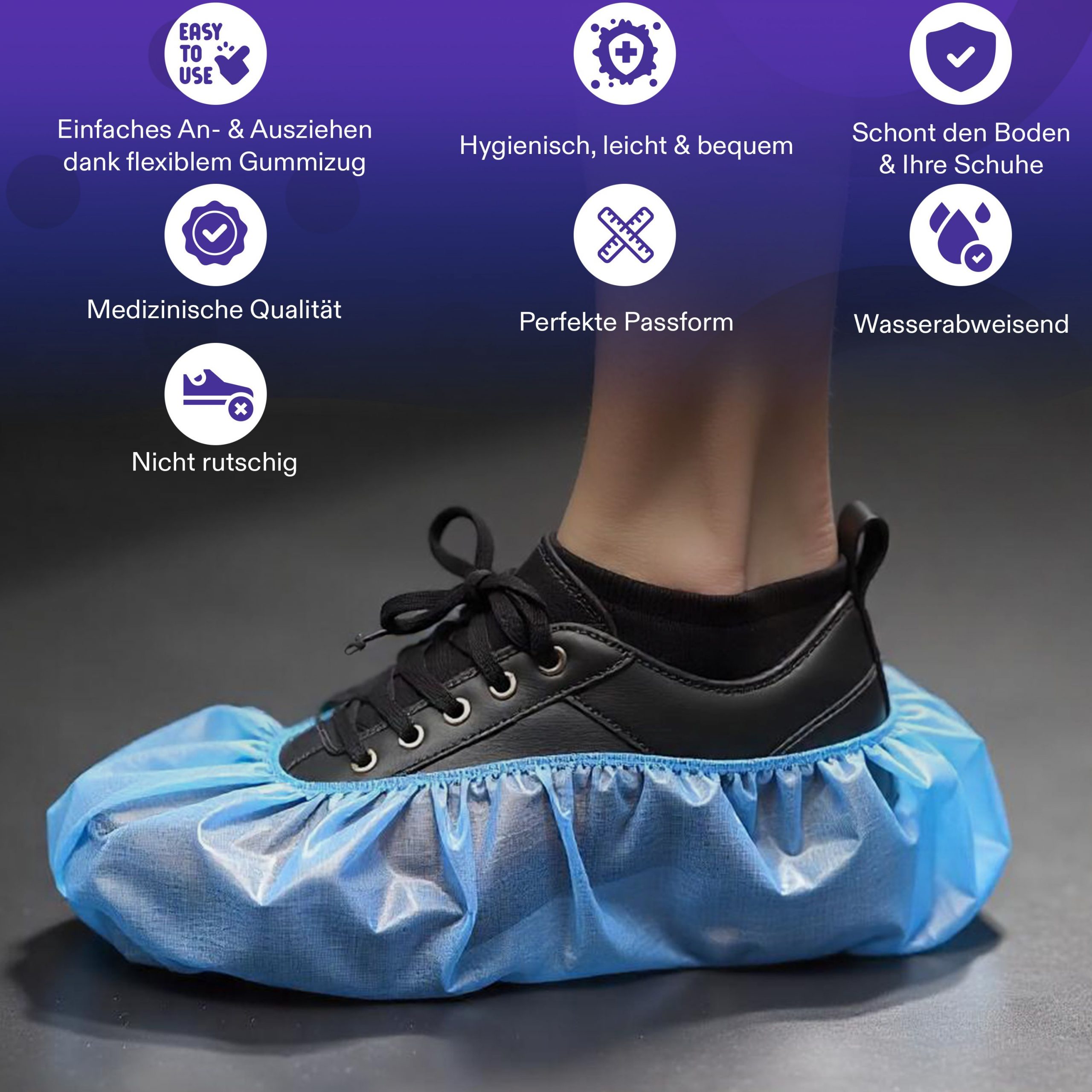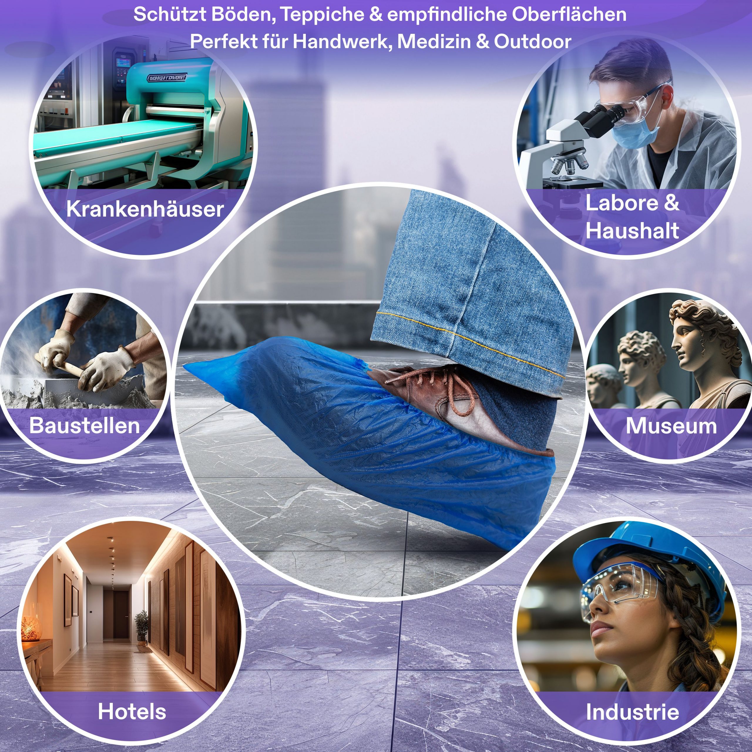 Ideal für den Einmalgebrauch: Mit 100 Stück pro Packung bieten diese Einweg-Überschuhe einen schnellen, hygienischen Schutz. Praktisch für Medizin, Industrie und Handwerk.