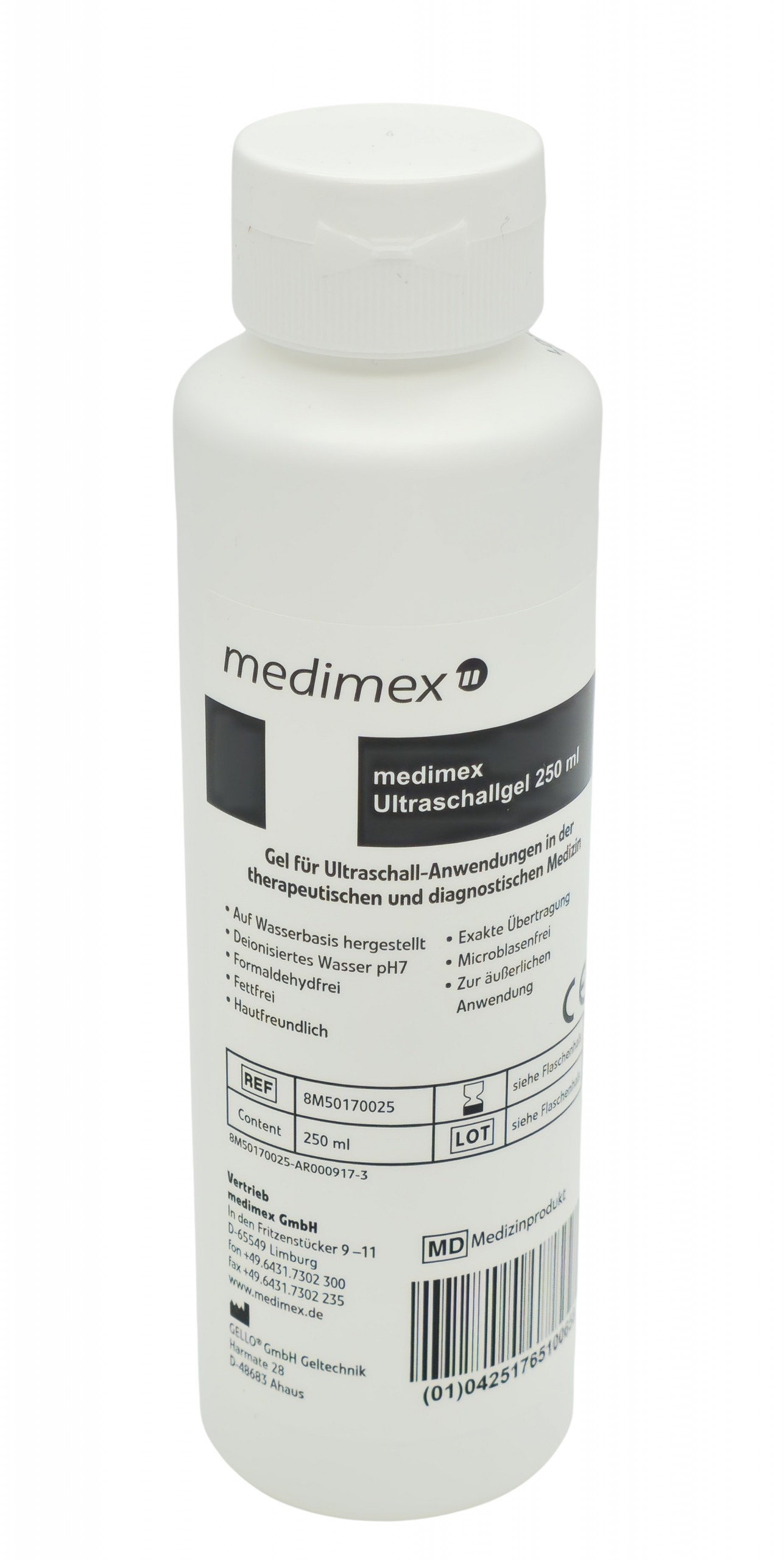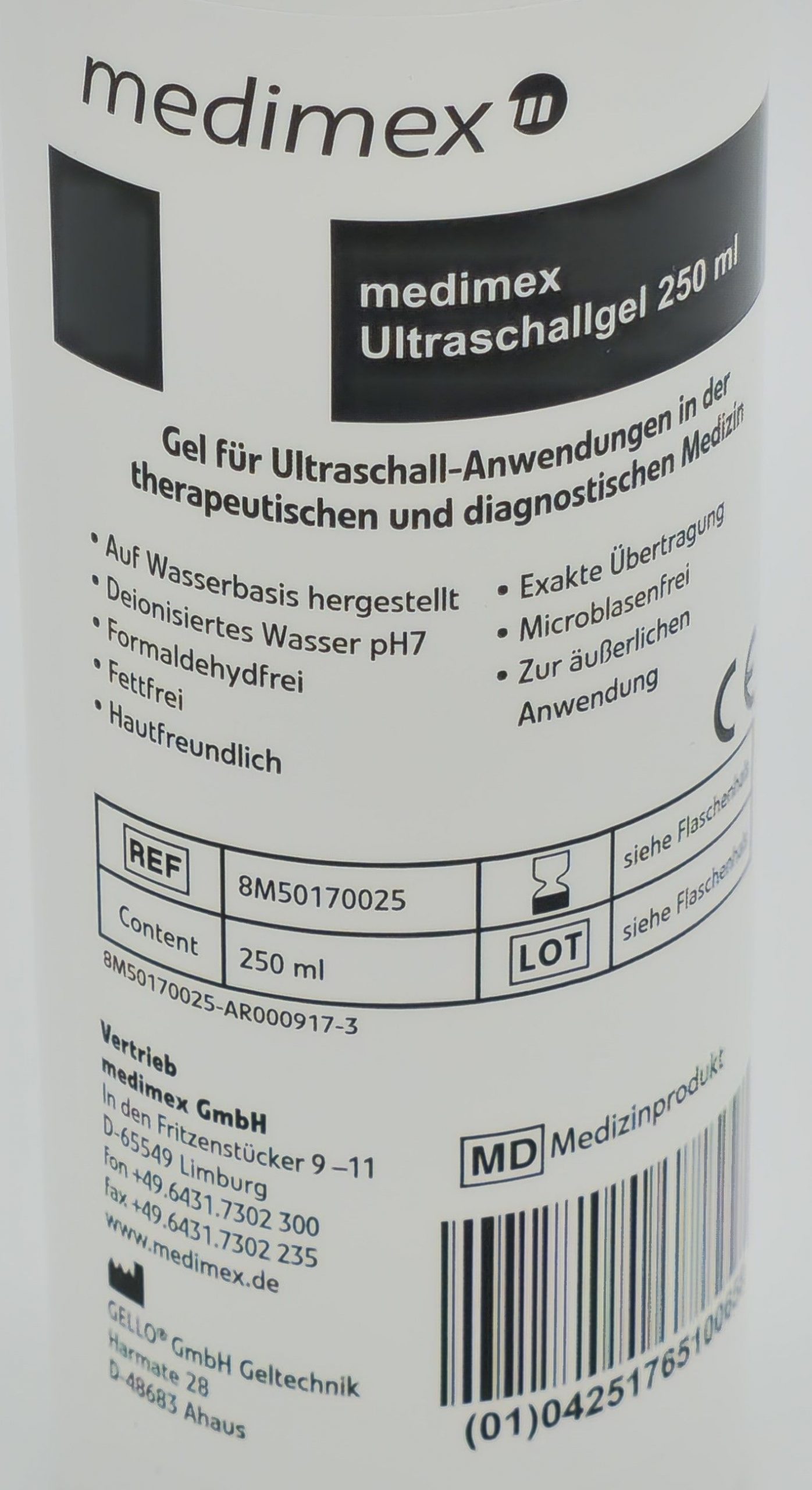 Hergestellt aus deionisiertem Wasser, ist das Gel pH-neutral (pH 7), fettfrei und frei von Formaldehyd. Das medimex Ultraschallgel eignet sich für verschiedenste Anwendungen, einschließlich der Nutzung mit Tens- und EMS-Geräten. Die 250 ml-Dispenserflasche ist auslaufsicher und ermöglicht eine saubere Anwendung, egal ob im klinischen Bereich oder bei der Kosmetikbehandlung.
