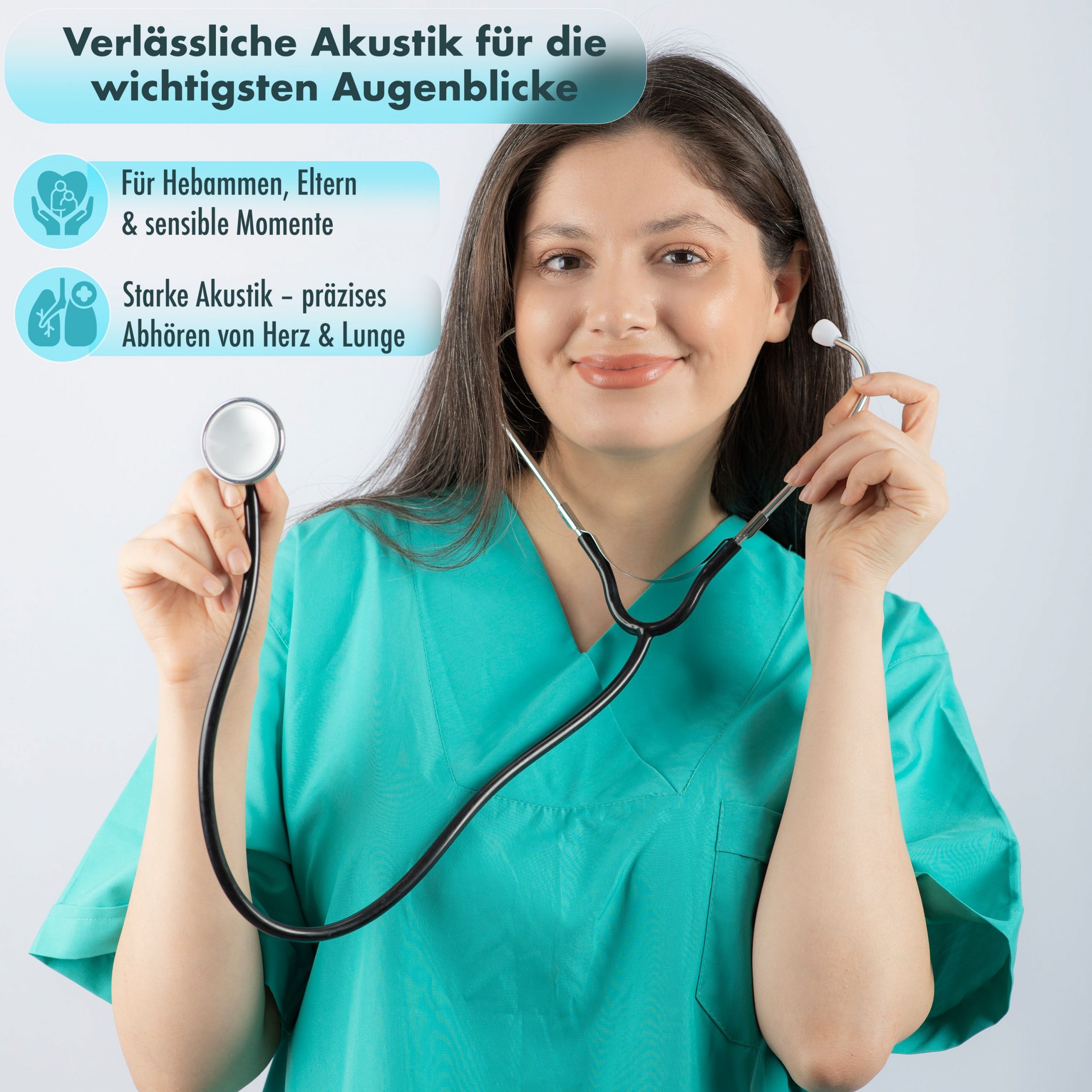 Auch für Herztöne im Babybauch geeignet – ideal für werdende Eltern, Hebammen und medizinisches Fachpersonal.