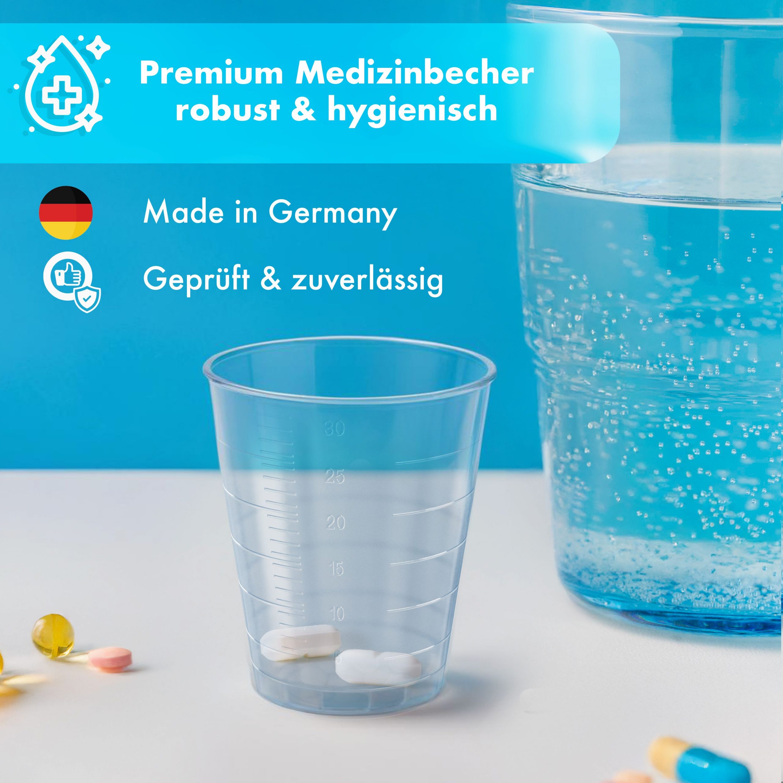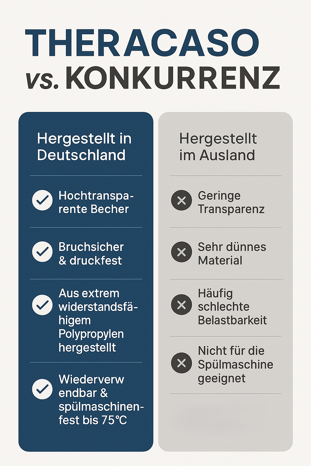 Im Gegensatz zu vielen Konkurrenzprodukten sind unsere Becher besonders dickwandig, formstabil und bruchsicher. Ideal für den medizinischen Alltag, Haushalt oder kreative Anwendungen.