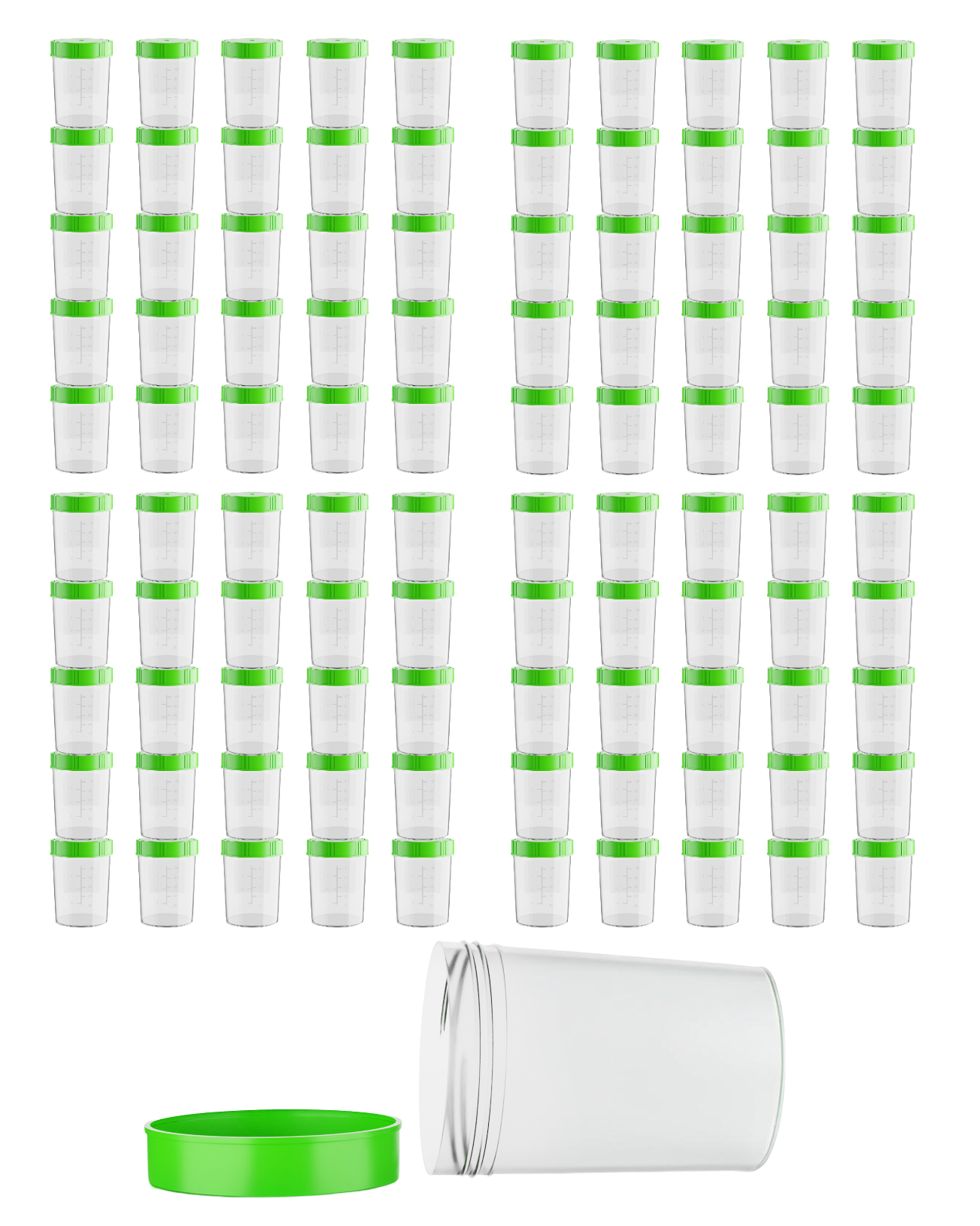 Set mit 100 Probenbecher à 125 ml und Deckel grün, inkl. 120 Etiketten