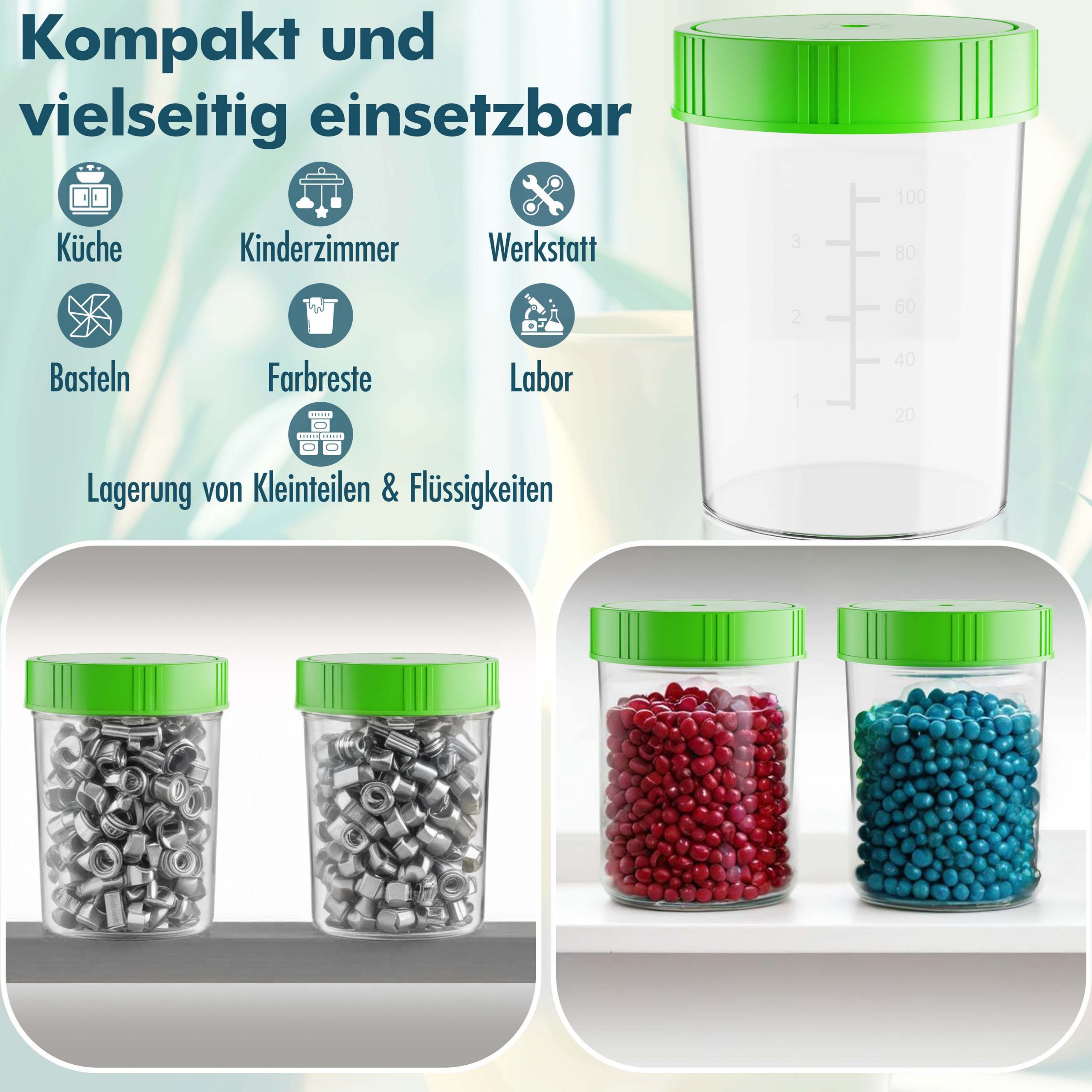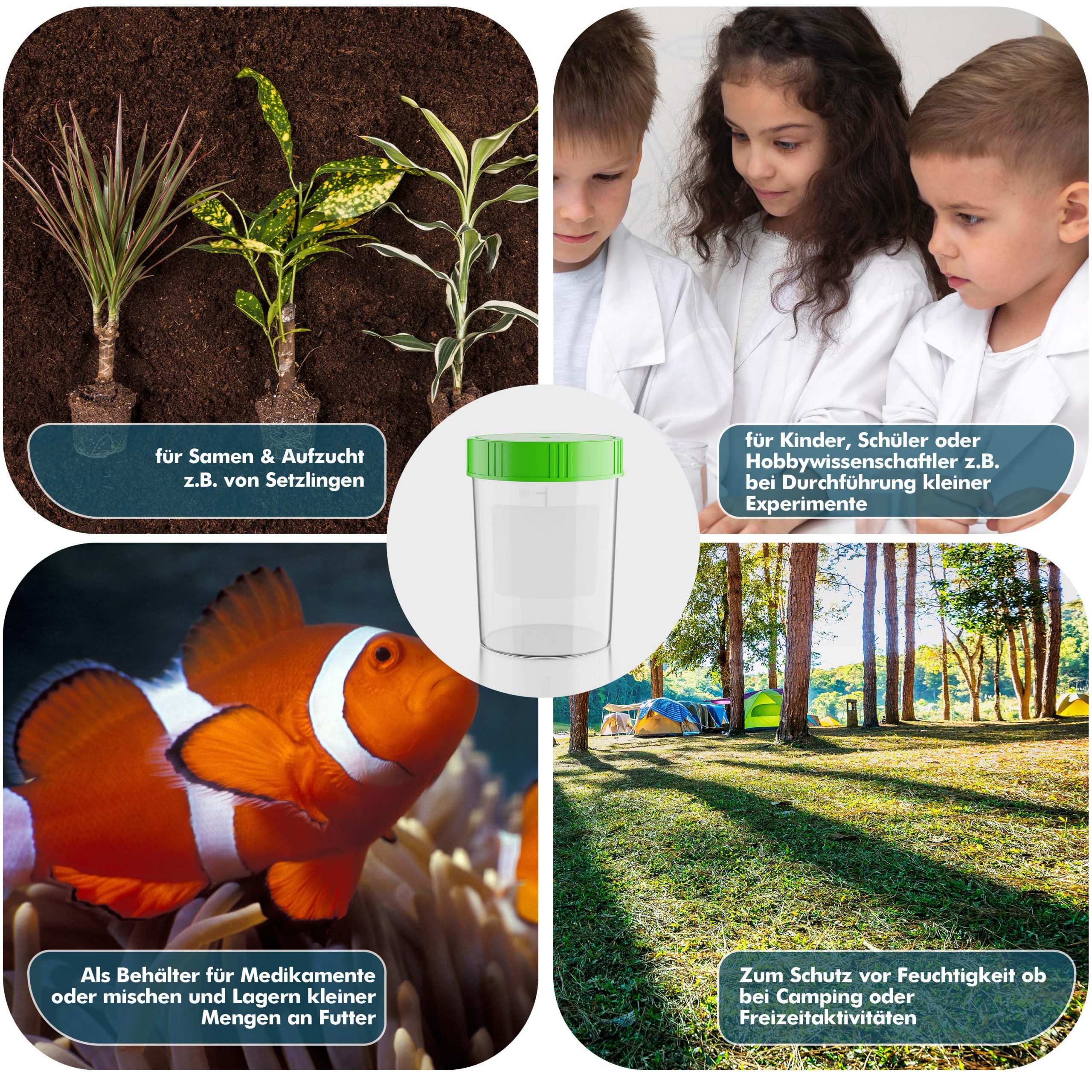 Ob für medizinische Zwecke, Laboruntersuchungen oder die sichere Aufbewahrung von Kleinteilen wie Schrauben und Nägel oder für die Sammlung von Flüssigkeiten – dieses Set erfüllt höchste Qualitätsansprüche und bietet vielseitige Einsatzmöglichkeiten.