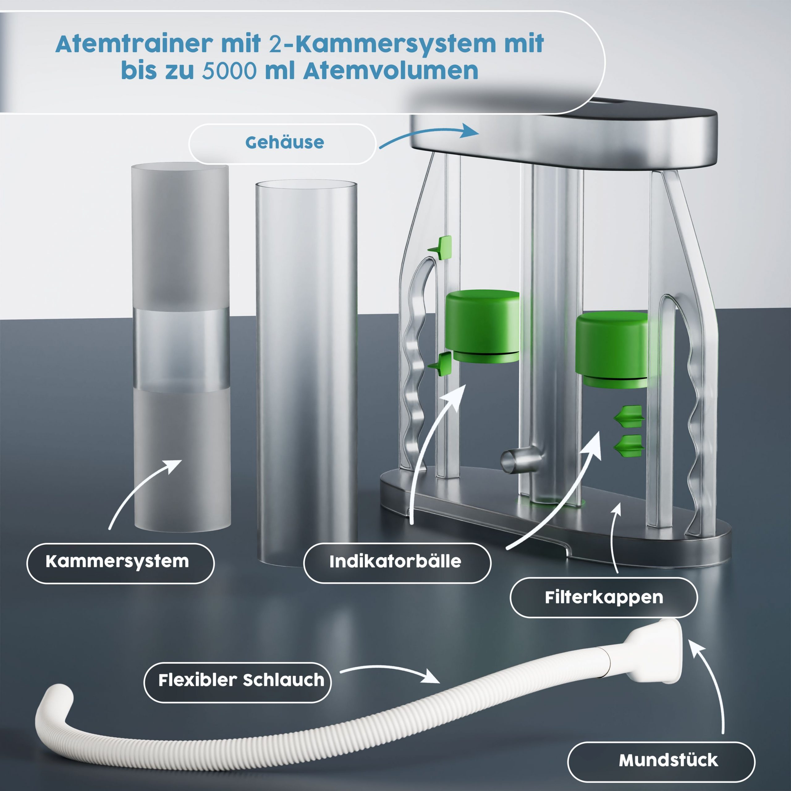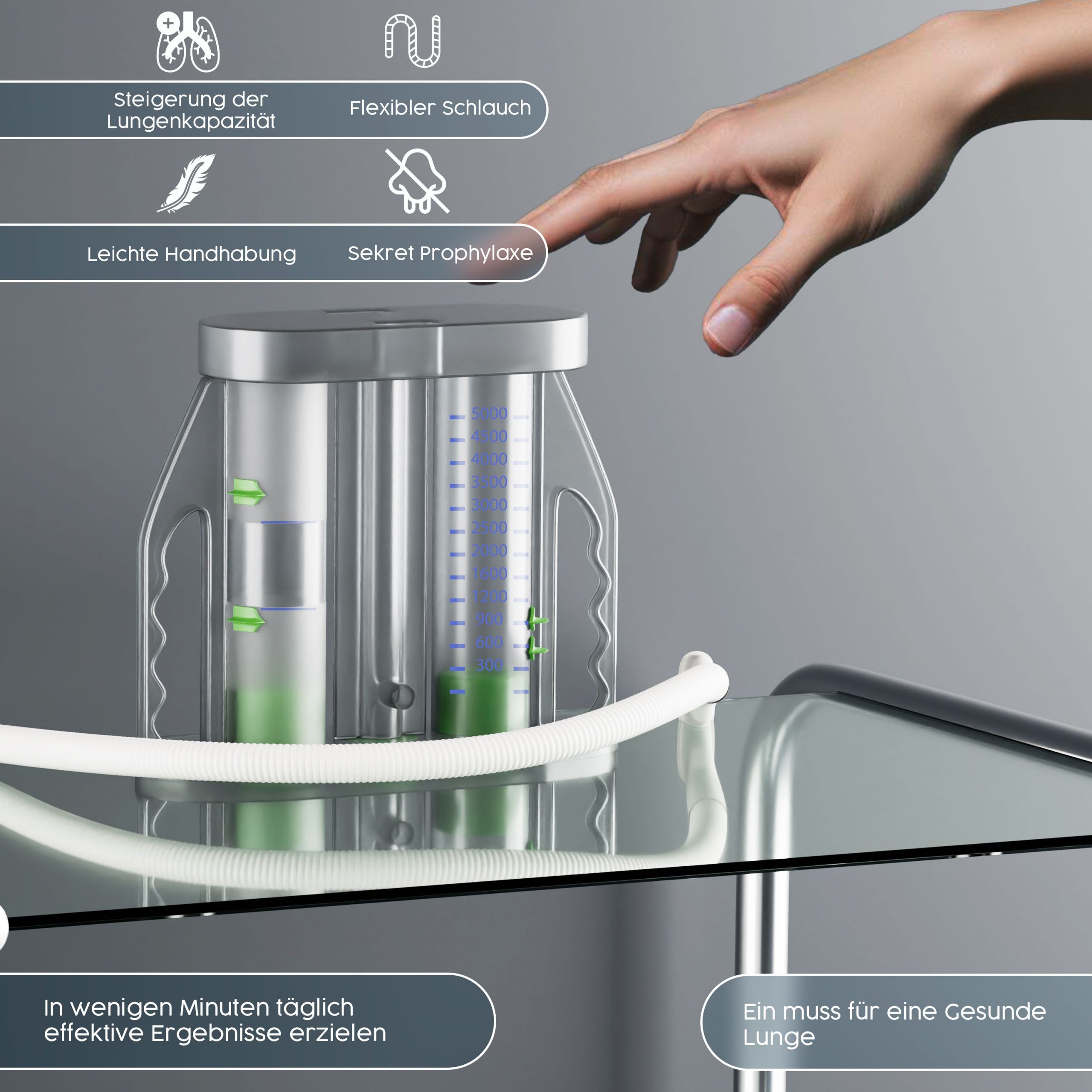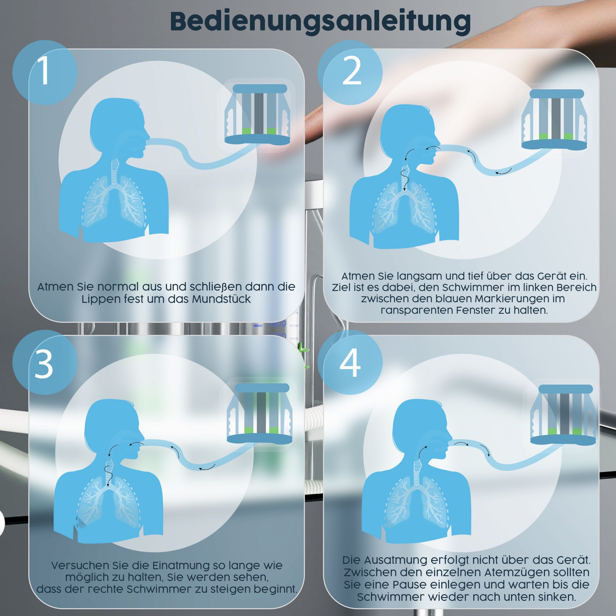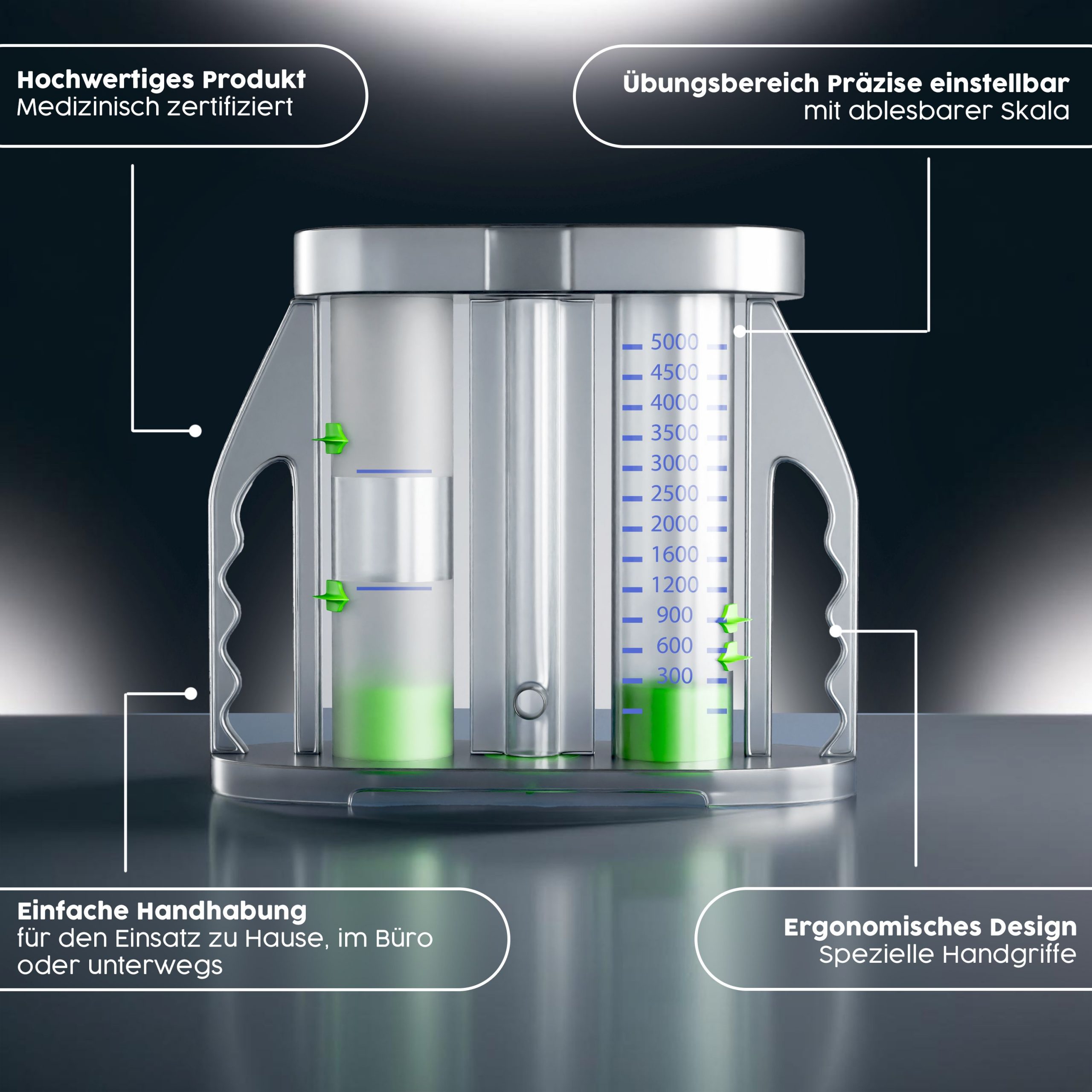 Entwickelt zum Trainieren der Lunge durch Einatemübungen, als atemvertiefende Maßnahme und zur Ventilationsförderung.