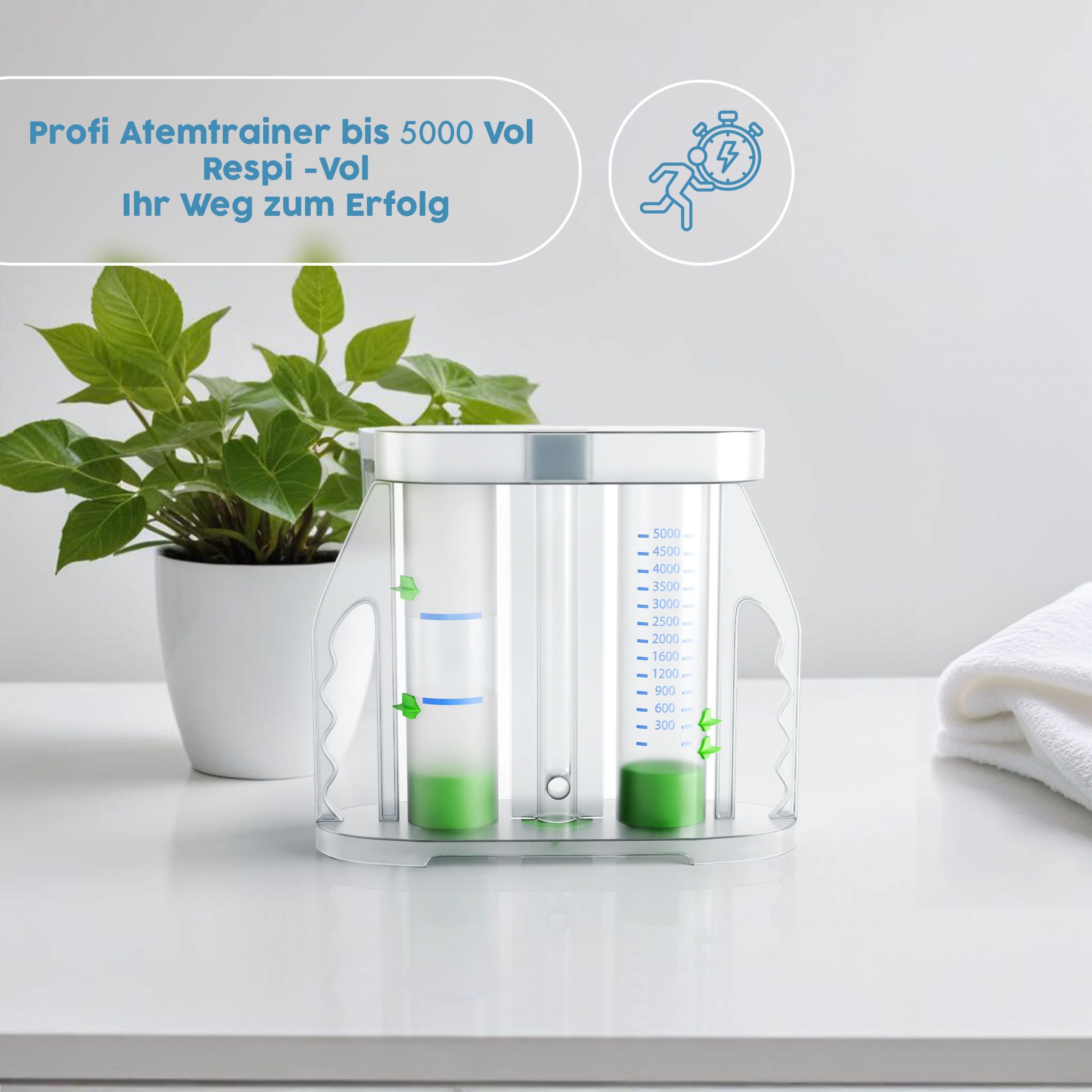 Das Volumenorientierte Atemübungsgeräte RESPIVOL ist für ein Atemvolumen bis 5.000 ml.